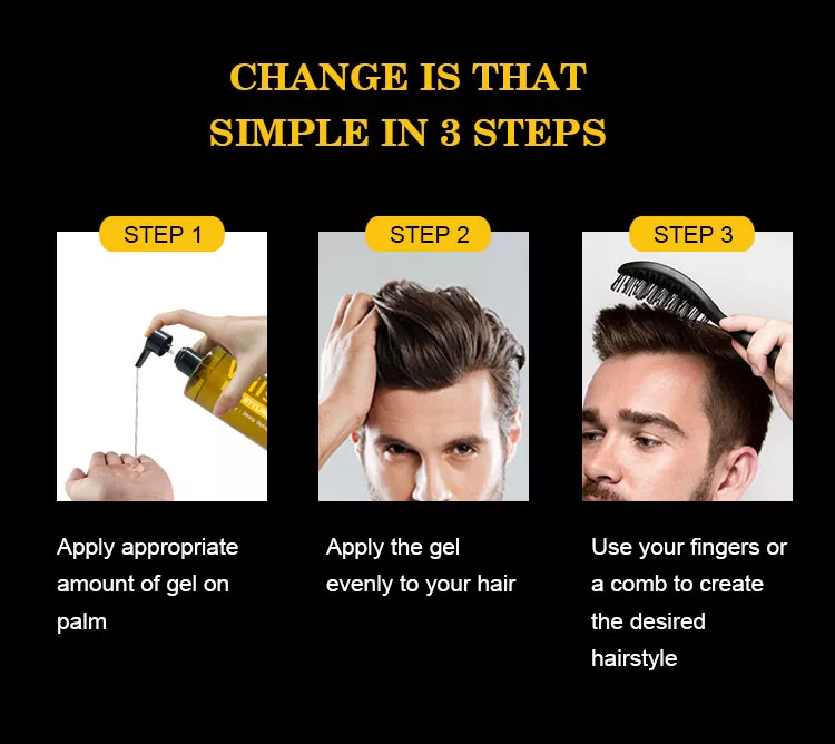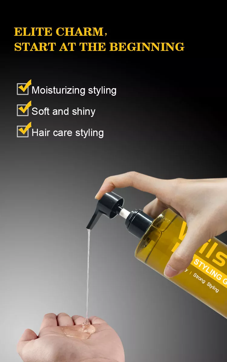 Wilson Men's Ultra Smooth Seamless Hair Styling Gel kosmetikk refererer til hårstyling og modifiserende effekt av kosmetikk, sprayet eller påført håret, løsemiddelfordampning og tørking på håret for å danne en gjennomsiktig film, slik at hårfiberen stivner og opprettholder formen til formålet for å møte behovene til ulike frisyrer.