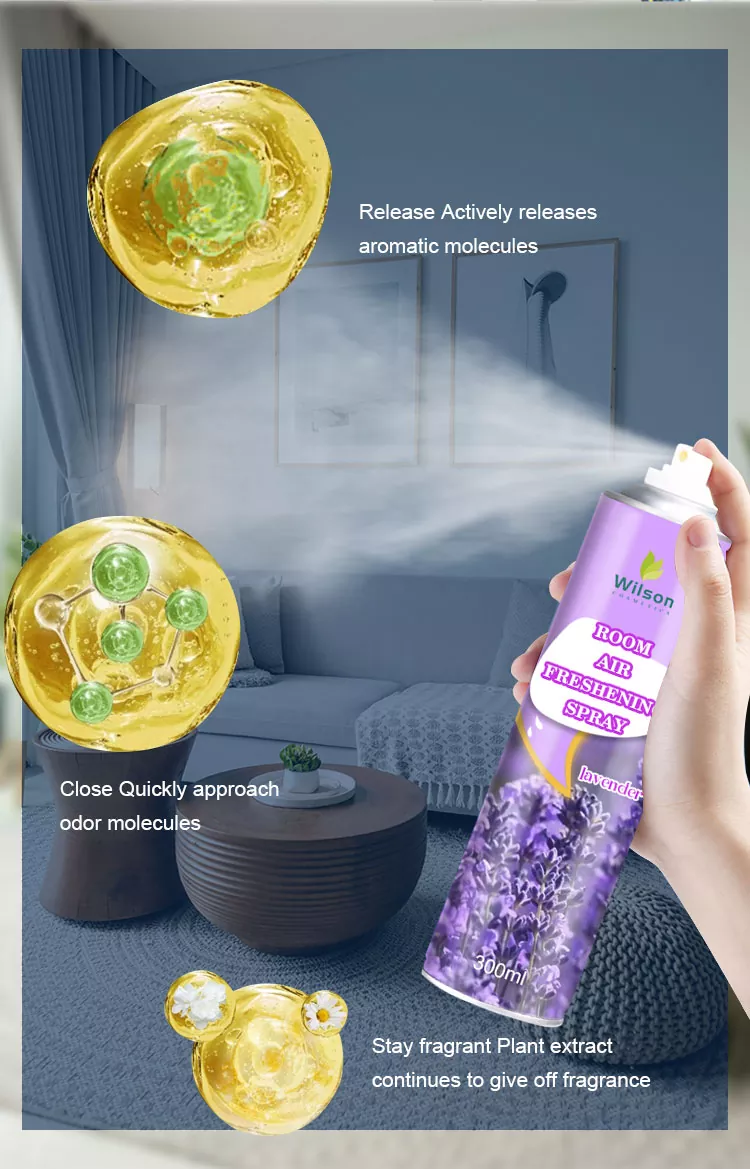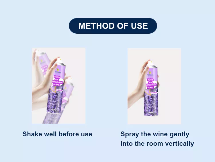 Vårt Room Air Freshener Spray-produkthus har en raffinert aluminium/tinnboksdesign, kompakt volum, lett å bære til enhver tid, 360-graders trykkdyse, slik at sprayen kan sprayes jevnt og flyte. Den kan ikke bare fjerne skadelige stoffer som lukt, formaldehyd, PM2.5, men også effektivt filtrere fine partikler som støv og virus i luften, og skape et rent og friskt hjemmemiljø for deg