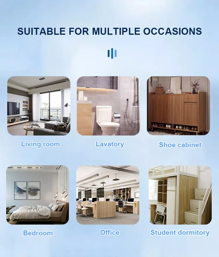er et produkt spesielt utviklet for å forbedre inneluftkvaliteten. Det kan forbedre innelukt, formaldehyd, PM2.5 og andre skadelige stoffer, slik at du puster inn mer ren og frisk luft. Luftfriskere er egnet for følgende scenarier: